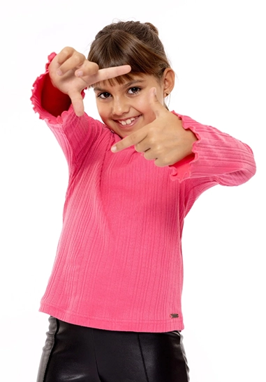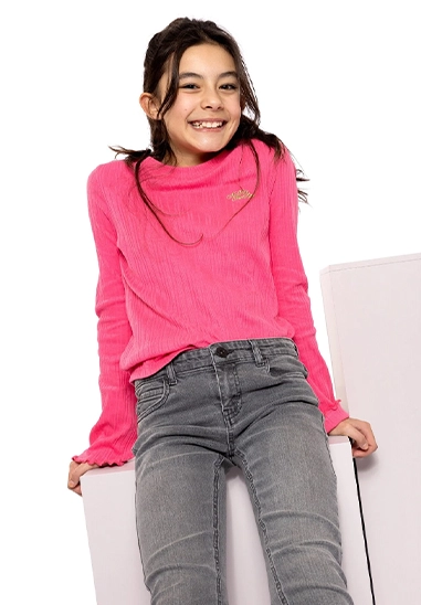 Longsleeve voor meisjes van het merk No Way Monday. Dit shirt met lange mouwen is verkrijgbaar in het fuchsia.
