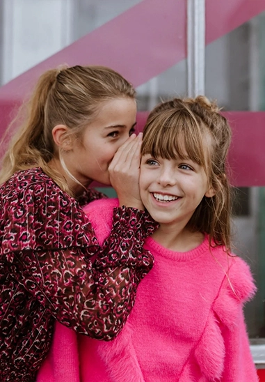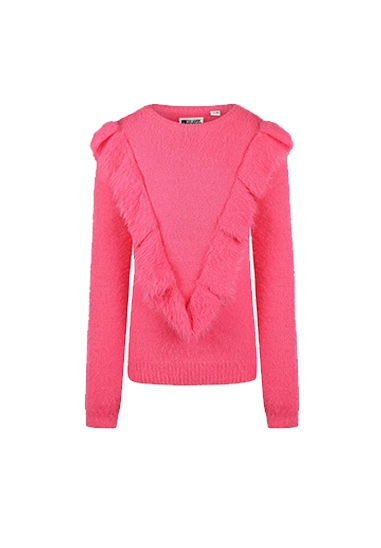Sweater voor meisjes van het merk No Way Monday. Deze sweater heeft een ronde hals en rouches. Verkrijgbaar in de kleur fuchsia.