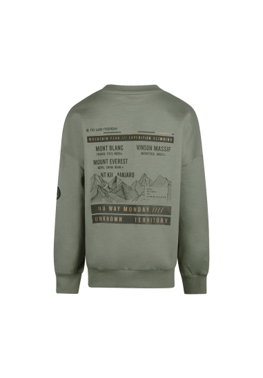 Deze groene sweater van No Way Monday is een echte must-have voor jongens van 6 tot en met 14 jaar. De sweater heeft een ronde hals, lange mouwen en een sportieve fit. Op de borst en mouw vind je subtiele details, terwijl de achterkant is voorzien van een grote mountain expeditie print die zorgt voor een coole en avontuurlijke look.