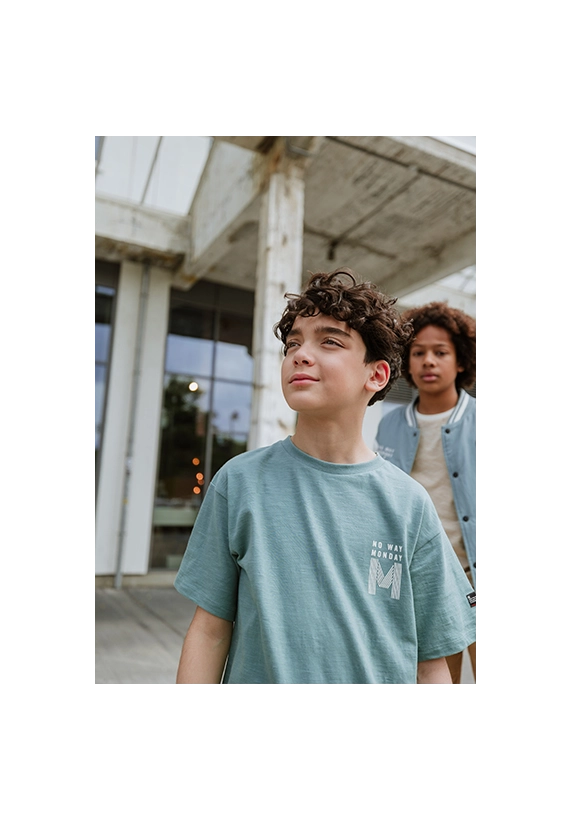 T-shirt korte mouwen loose fit voor jongens van het merk No Way Monday. Het shirt is verkrijgbaar in het groen.