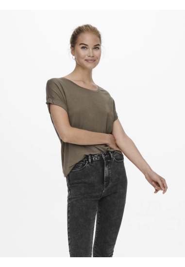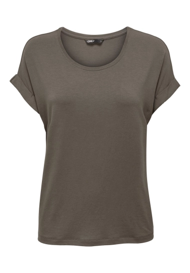 Basic shirt Moster voor dames van het merk Only. Het shirt heeft een ronde hals en omgeslagen korte mouwen. Het shirt is verkrijgbaar in diversen kleuren. Regelmatig ook verkrijgbaar in diverse trendy seizoenskleuren.