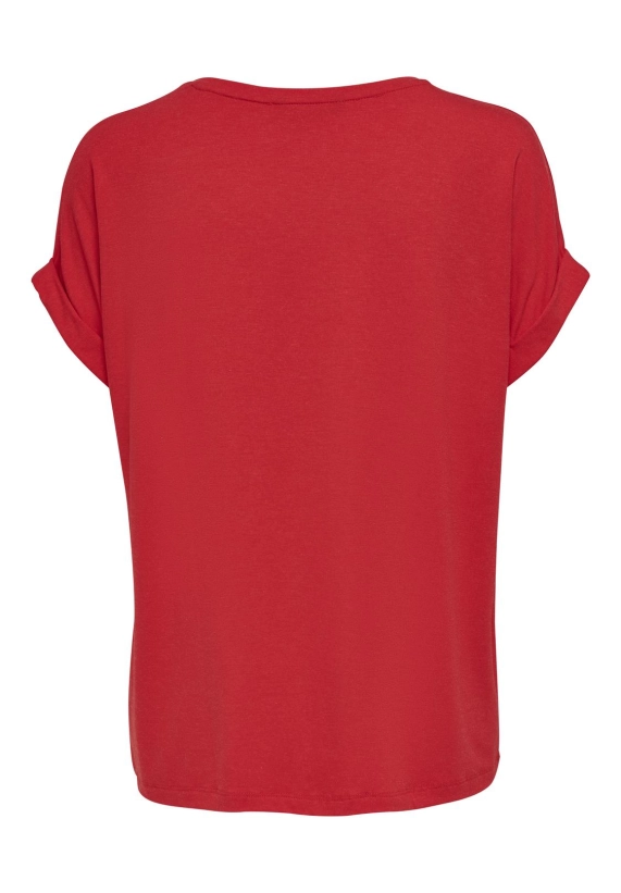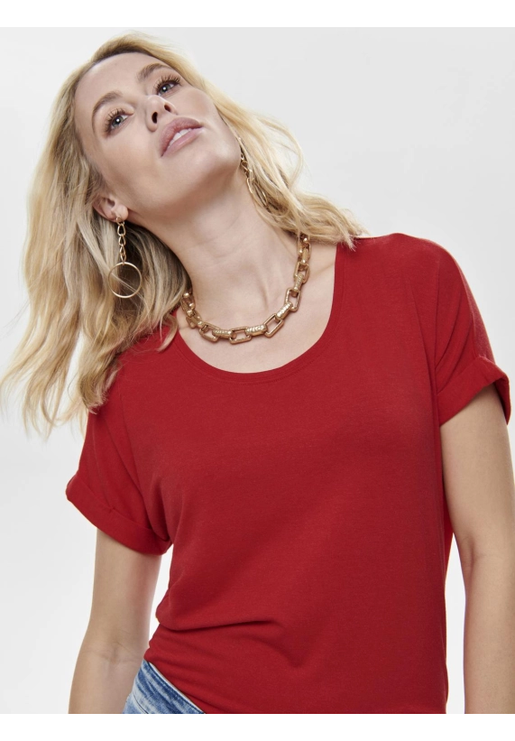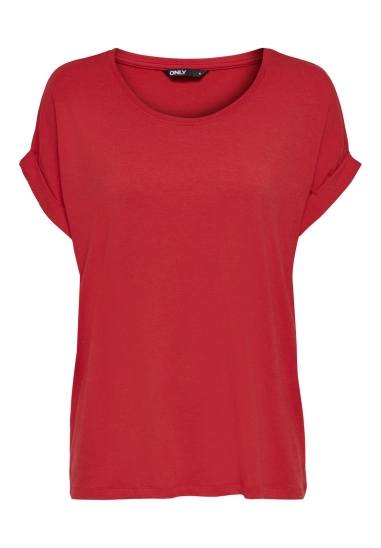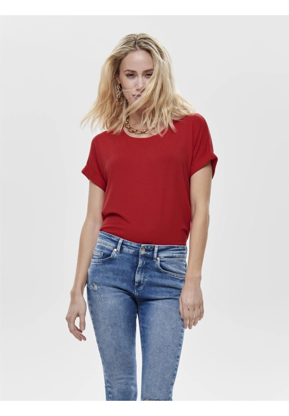 Basic shirt Moster voor dames van het merk Only. Het shirt heeft een ronde hals en omgeslagen korte mouwen. Het shirt is verkrijgbaar in diversen kleuren. Regelmatig ook verkrijgbaar in diverse trendy seizoenskleuren.