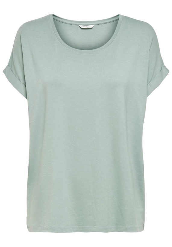 Basic shirt Moster voor dames van het merk Only. Het shirt heeft een ronde hals en omgeslagen korte mouwen. Het shirt is verkrijgbaar in diversen kleuren. Regelmatig ook verkrijgbaar in diverse trendy seizoenskleuren.
