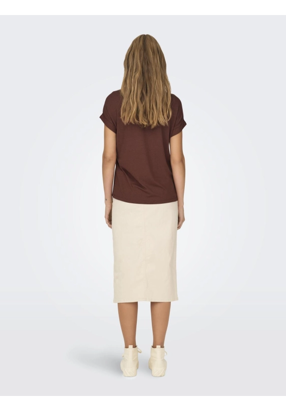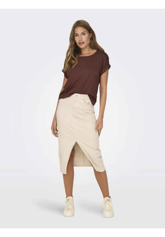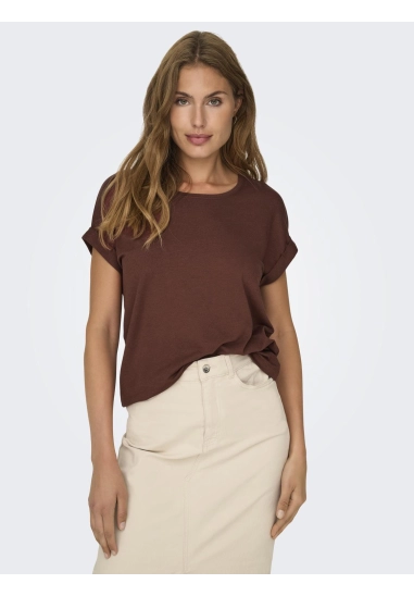 Basic shirt Moster voor dames van het merk Only. Het shirt heeft een ronde hals en omgeslagen korte mouwen. Het shirt is verkrijgbaar in diversen kleuren. Regelmatig ook verkrijgbaar in diverse trendy seizoenskleuren.