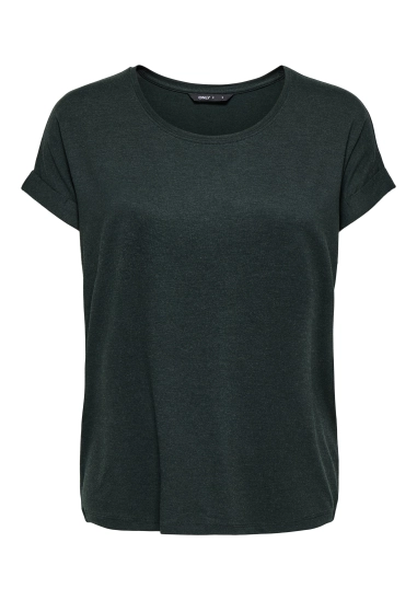 Basic shirt Moster voor dames van het merk Only. Het shirt heeft een ronde hals en omgeslagen korte mouwen. Het shirt is verkrijgbaar in diversen kleuren. Regelmatig ook verkrijgbaar in diverse trendy seizoenskleuren.