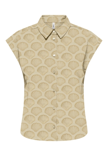 Blouse mouwloos Nova voor dames van het merk Only. Verkrijgbaar in de kleur beige. Met leuke schelpen patroon.