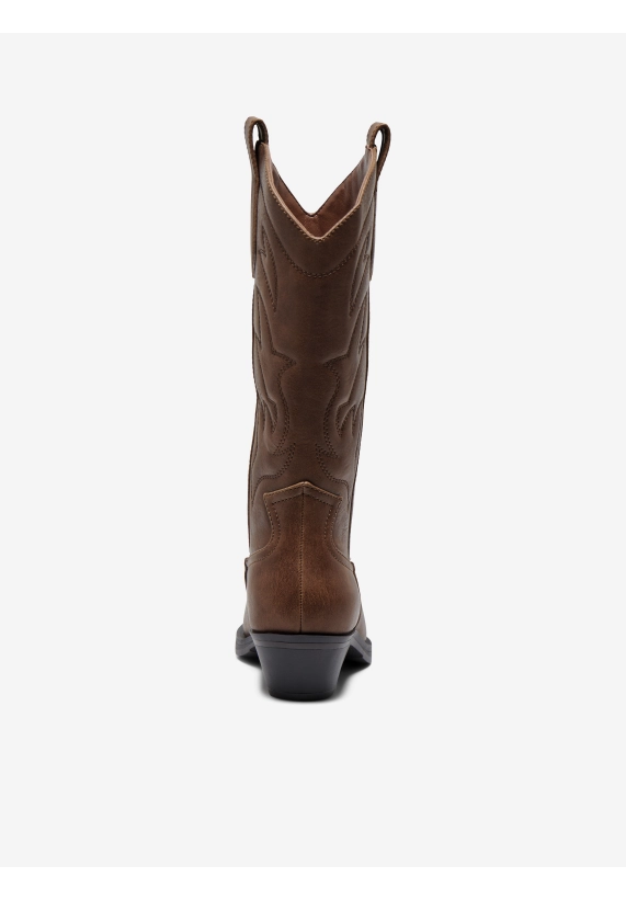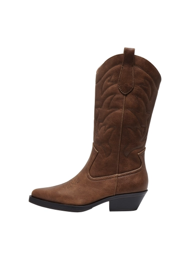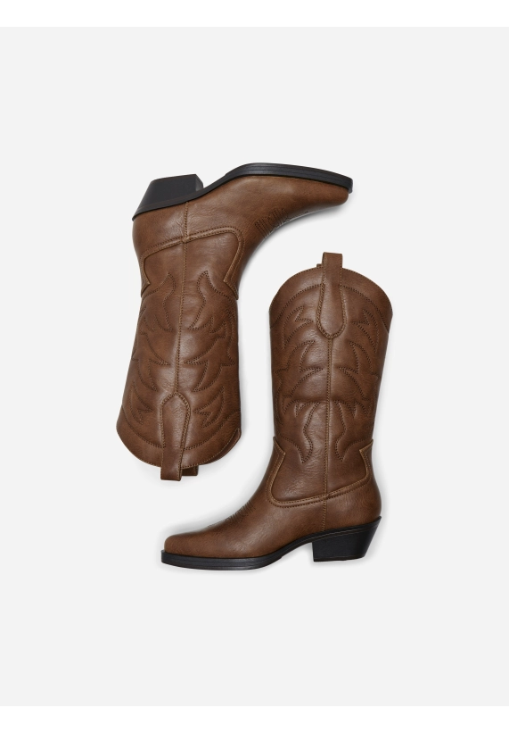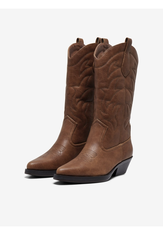 Cowboy laarzen Bronco voor dames van het merk ONLY. De laarzen hebben een kleine hak, spitse neus en mooie geborduurde patronen. Verkrijgbaar in de kleuren zwart en bruin.