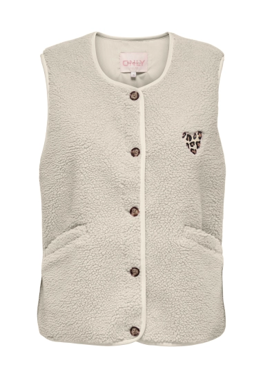 Gilet Baby voor dames van het merk Only. Verkrijgbaar in de kleur roze, licht blauw en ivoor wit.