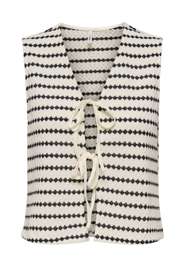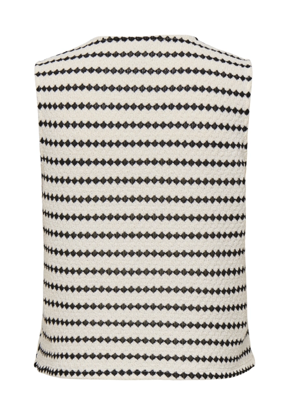 Verkrijgbaar in zwart en ivoor wit gestreept.