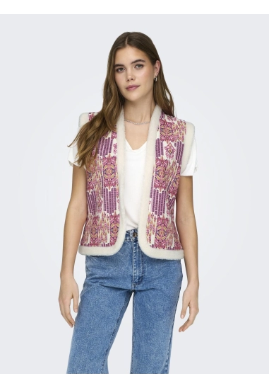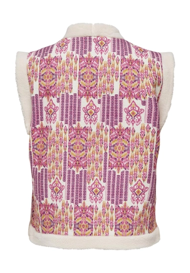 Verkrijgbaar in de kleur ivoor wit met roze print en teddy afwerking.