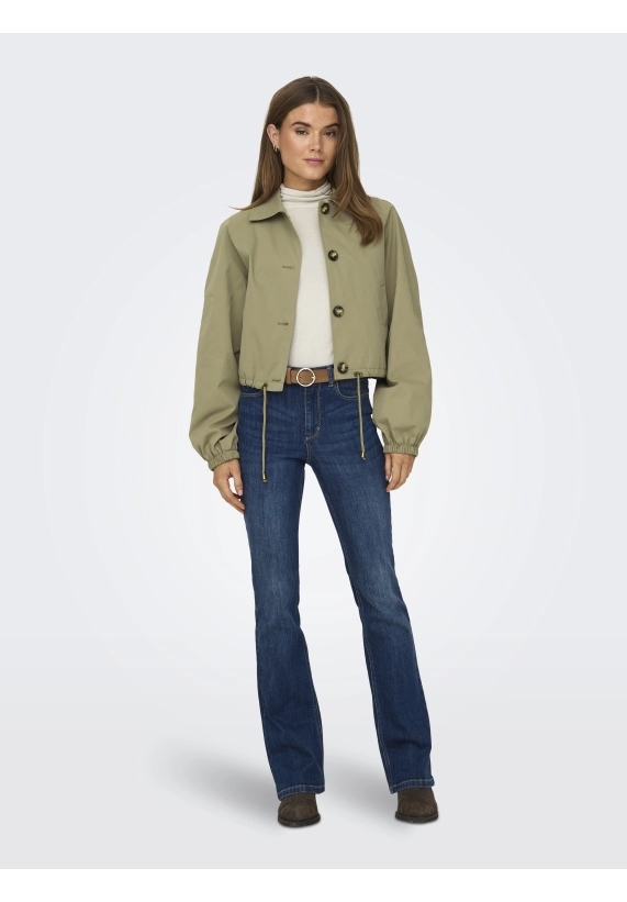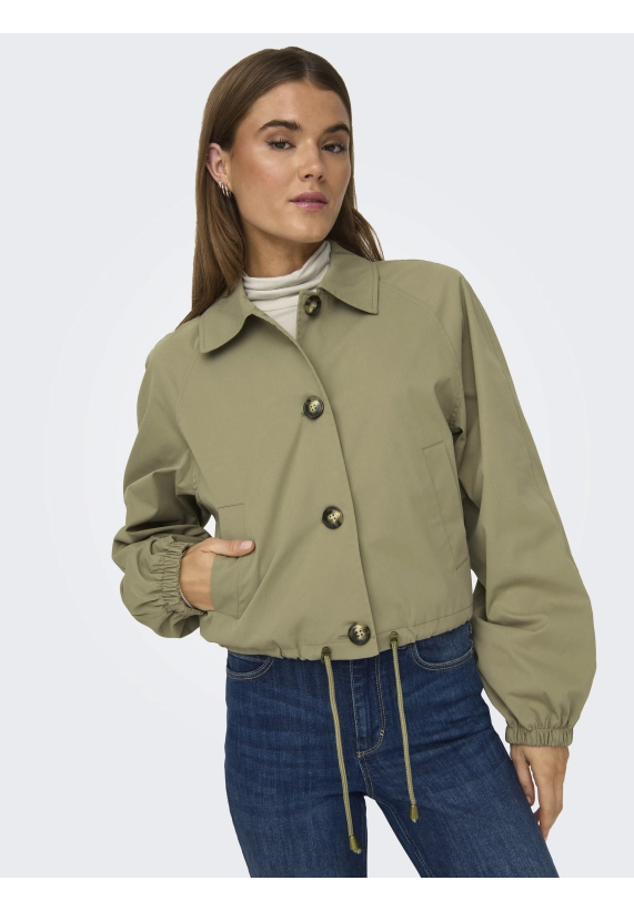 Met knoopsluiting en tunnelceintuur onderaan de jas.