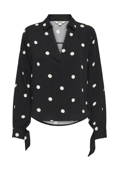Shirt Belem voor dames van het merk Only. Verkrijgbaar in de kleur zwart met witte stippen & wit met zwarte stippen.