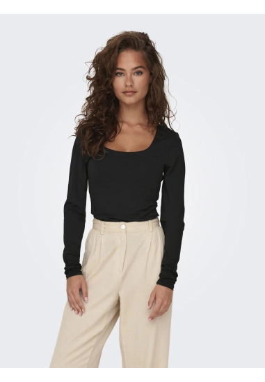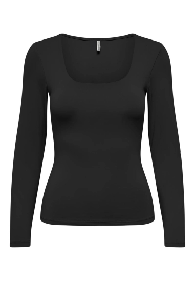 Dit basic shirt heeft lange mouwen en is gemaakt van een gladde elastische stof. Het shirt is aan twee kanten te dragen.