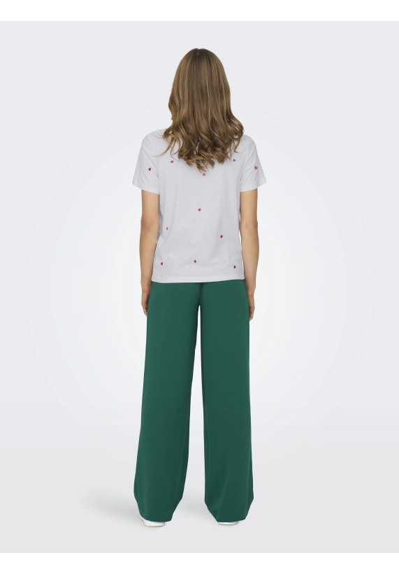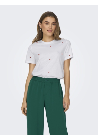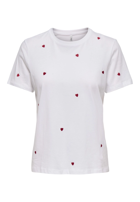 Shirt Ketty voor dames van het merk Only. Verkrijgbaar in de kleur wit met leuk hartjes patroon.