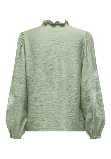 Verkrijgbaar in de kleuren ivoor wit en blauw met borduursel op de mouwen.