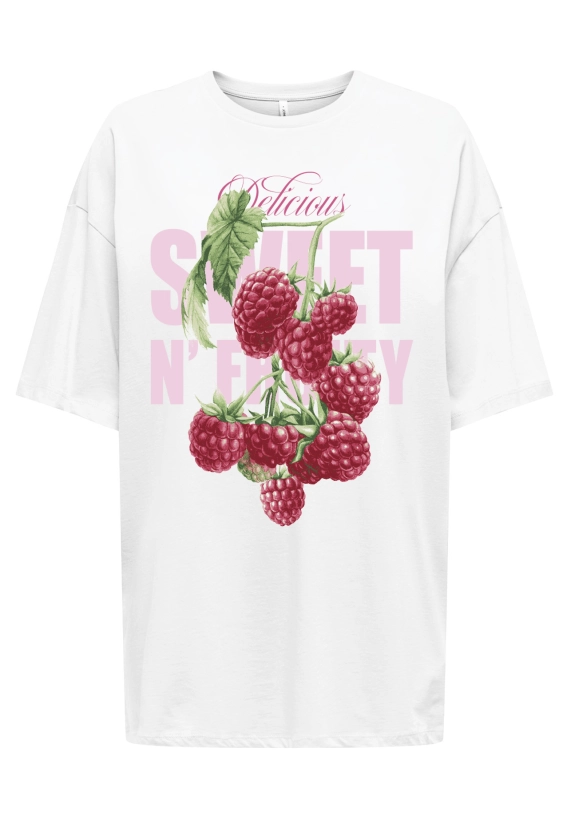Shirt Rosie voor dames van het merk Only. Verkrijgbaar in de kleur geel & wit. Met leuke print op de voorzijde.