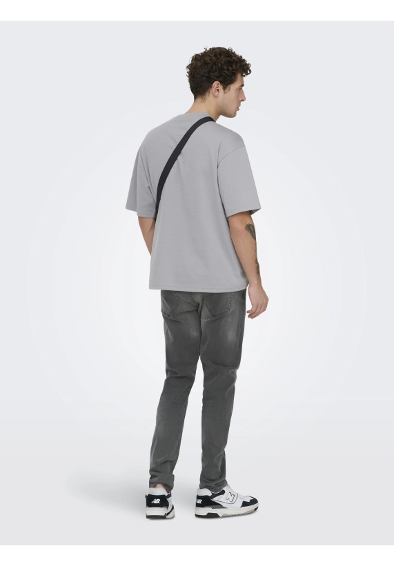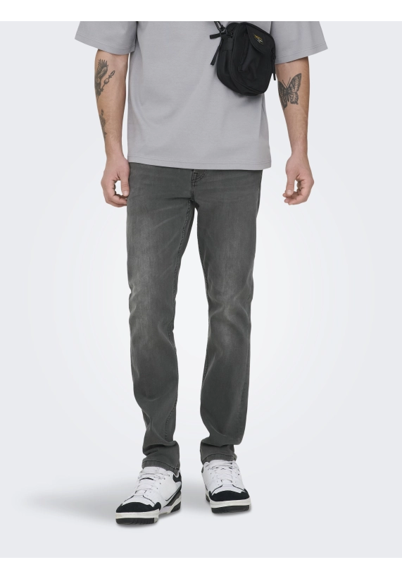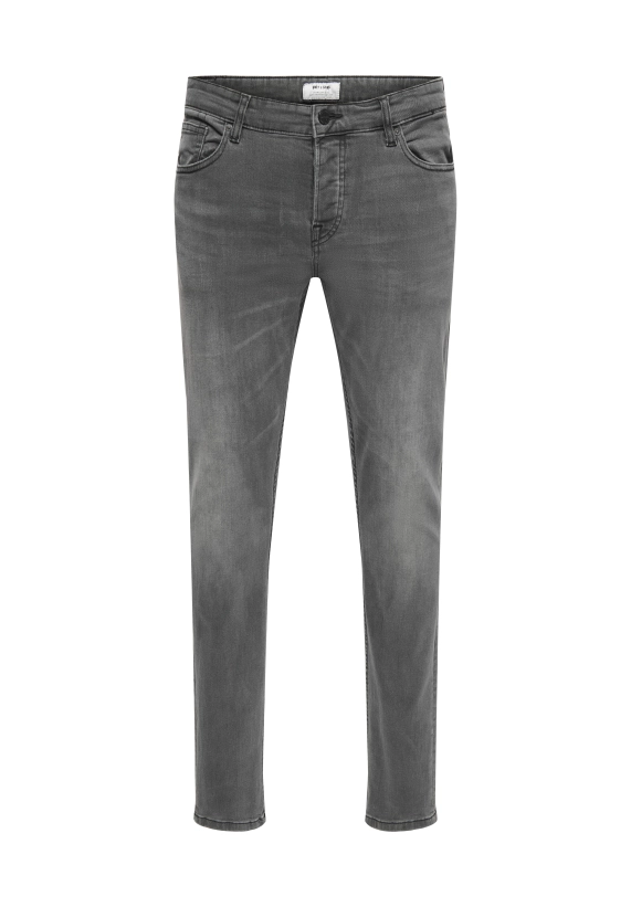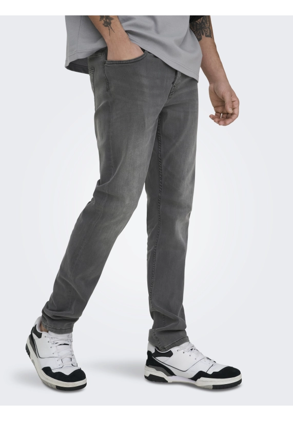 Slim fit jeans Loom voor heren van het merk Only & Sons. Deze five pocket denim broek heeft stretch voor extra draagcomfort. Verkrijgbaar in een zwarte wassing.