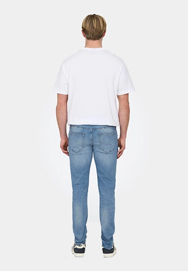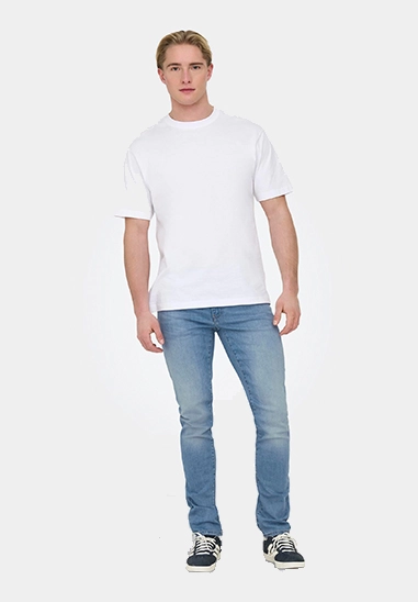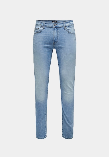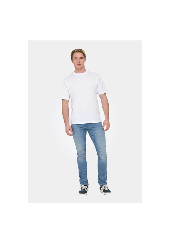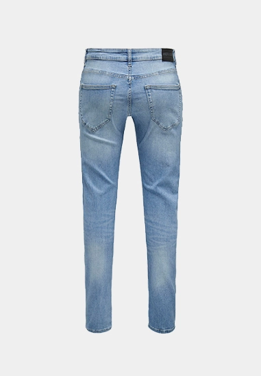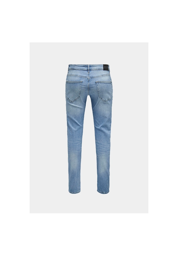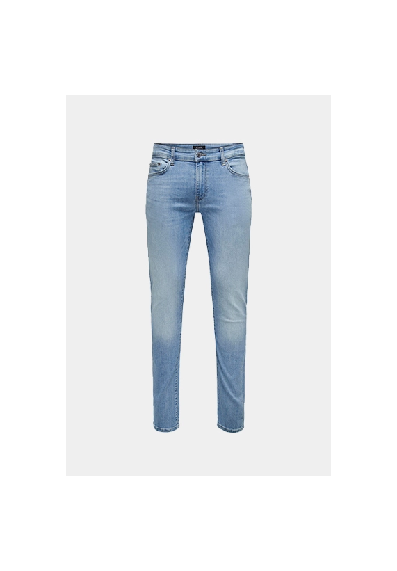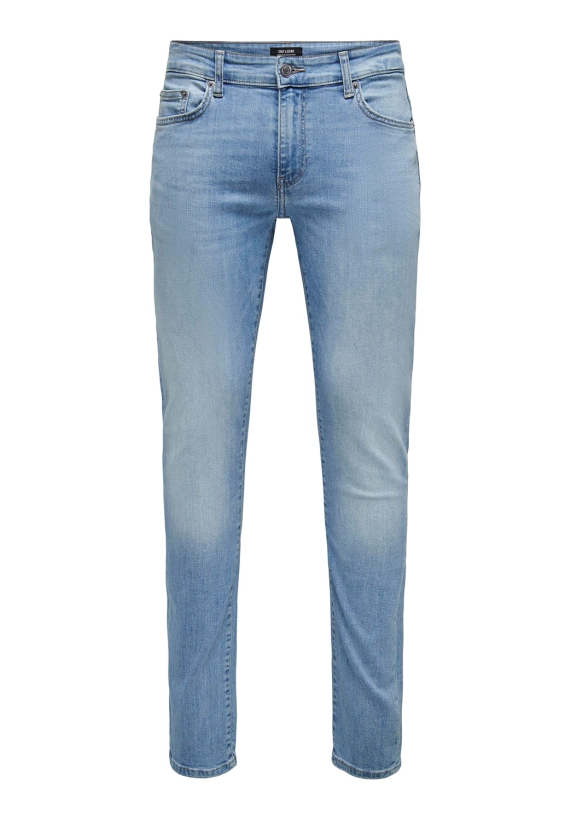 Slim fit jeans Loom voor heren van het merk Only & Sons. Deze five pocket denim broek heeft stretch voor extra draagcomfort.