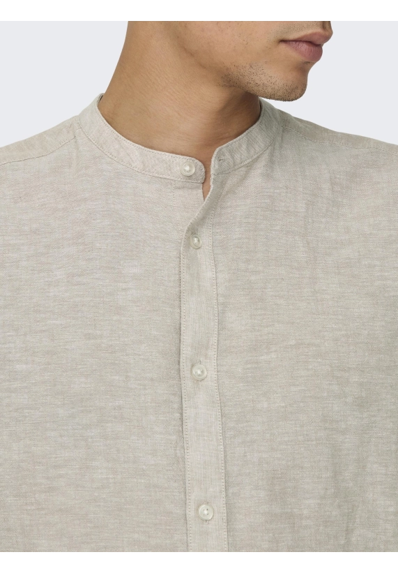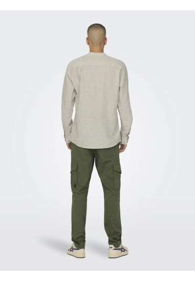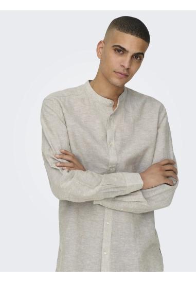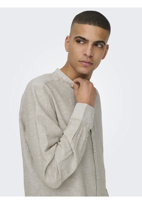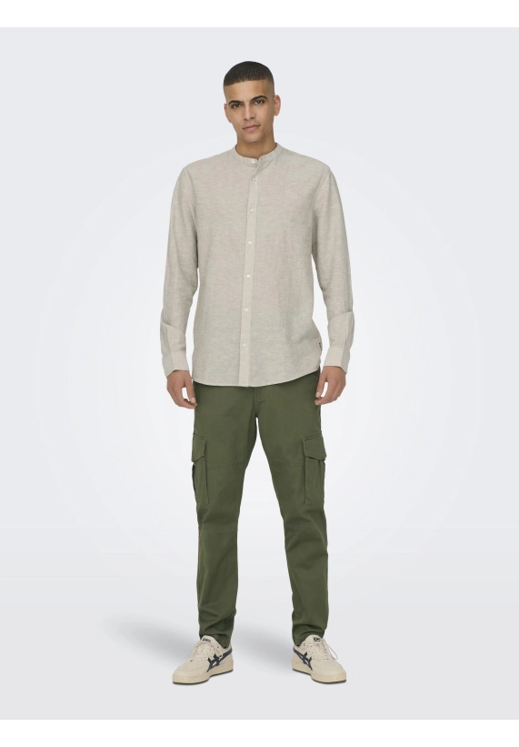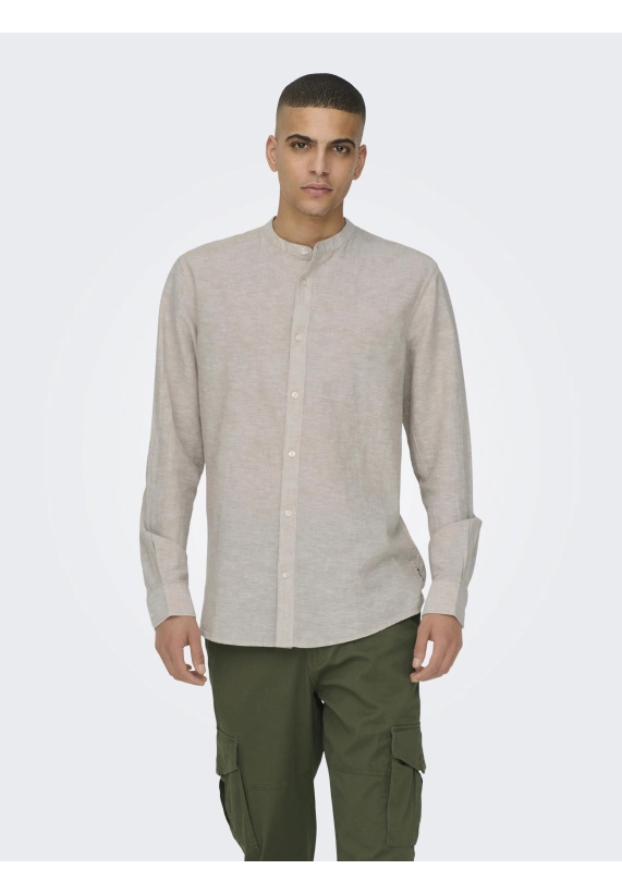 Linnen overhemd met lang mouwen. Dit overhemd voor heren van Only & Sons is verkrijgbaar in het groen en beige.