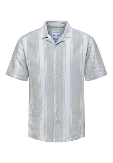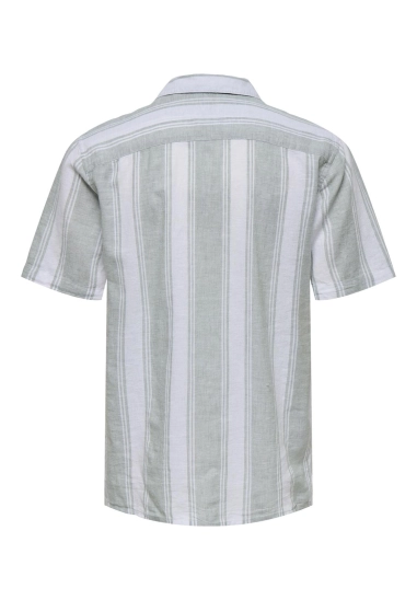 Linnen overhemd met korte mouwen. Dit overhemd van Only & Sons is gestreept en heerlijk comfortabel voor warme zomerdagen. Verkrijgbaar in beige, met een ivoor witte streep.