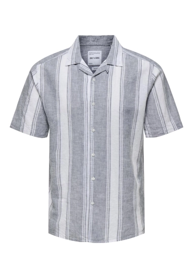 Linnen overhemd met korte mouwen. Dit overhemd van Only & Sons is gestreept en heerlijk comfortabel voor warme zomerdagen. Verkrijgbaar in beige, met een ivoor witte streep.
