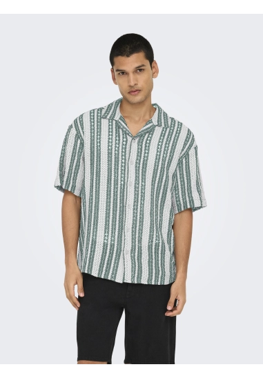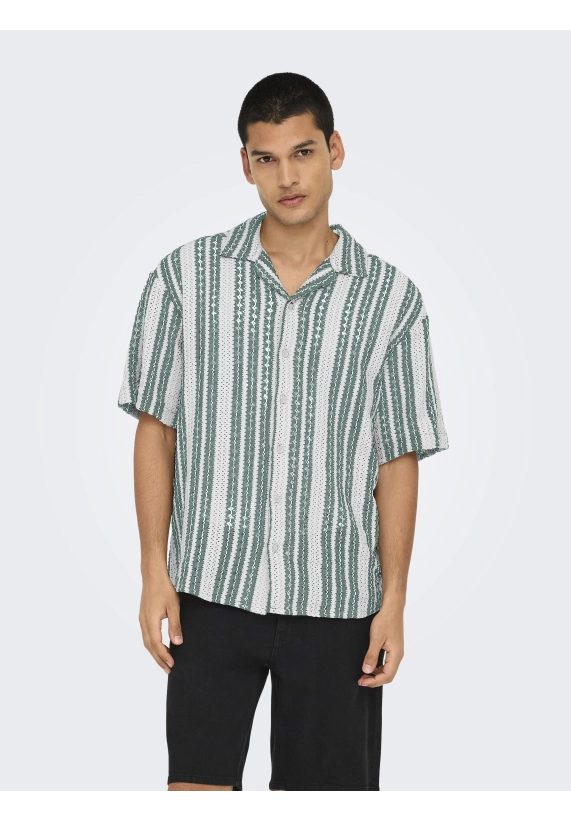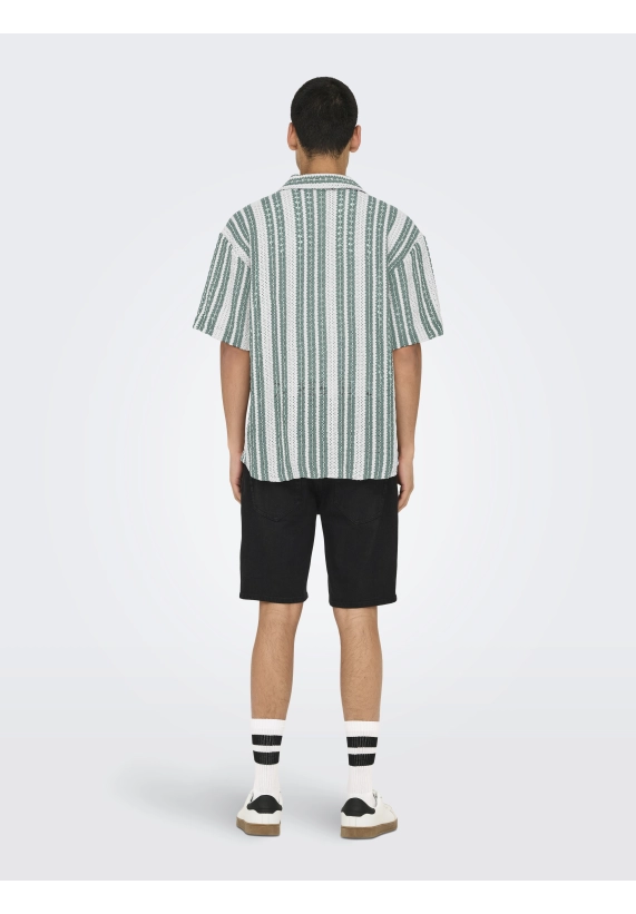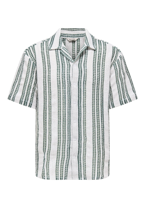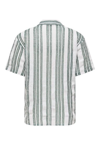 Verkrijgbaar in de kleuren ivoor wit met groen en beige met zwart gestreept.