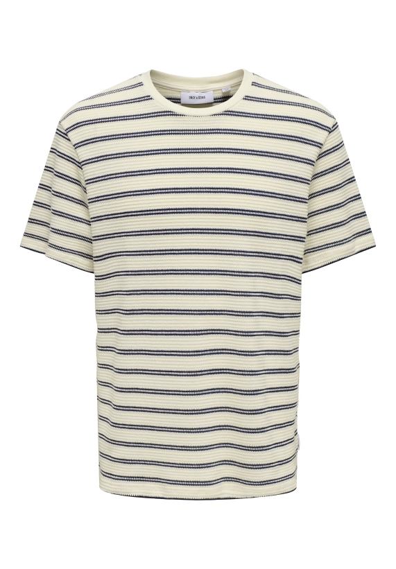 Shirt Ian voor heren van het merk Only&Sons. Verkrijgbaar in de kleur beige met olijfgroene streep & beige met donkerblauwe streep.