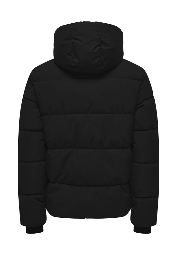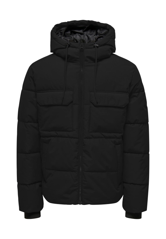 Winterjas Jelijah voor jongens van het merk Only&Sons. Verkrijgbaar in de kleur zwart.