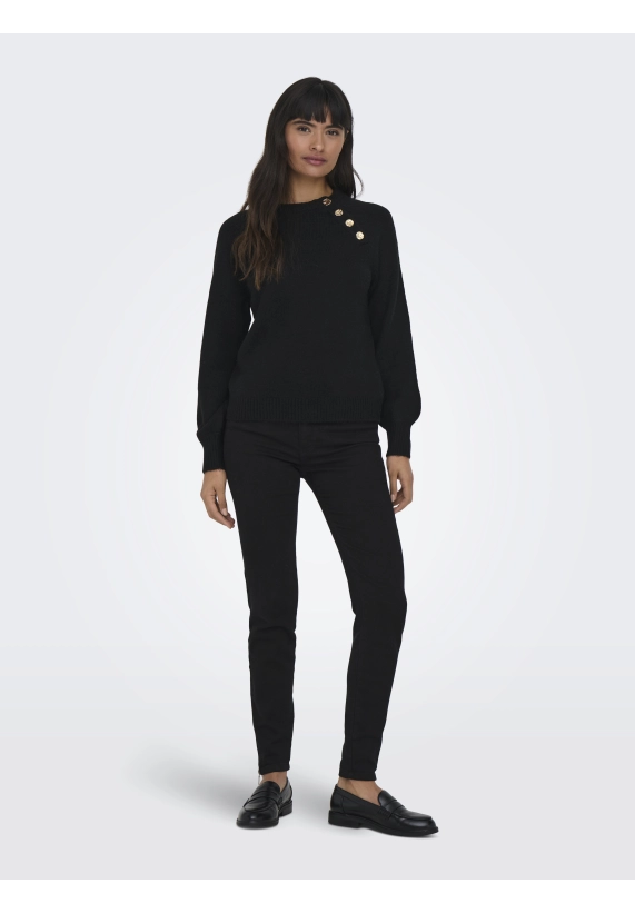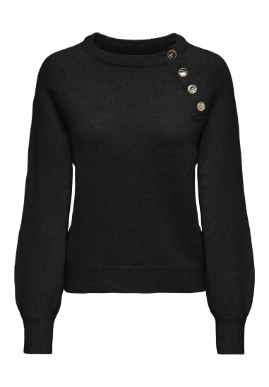 Verkrijgbaar in de kleuren zwart en beige met gouden knopen.