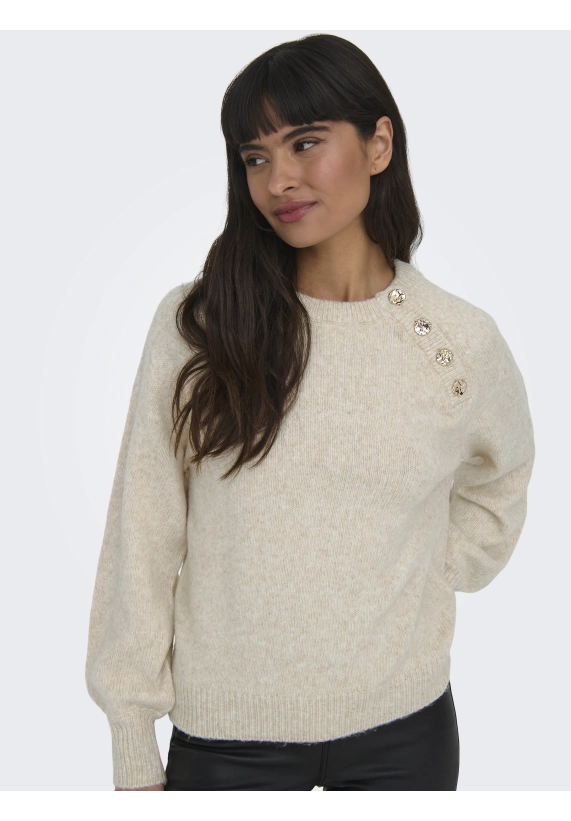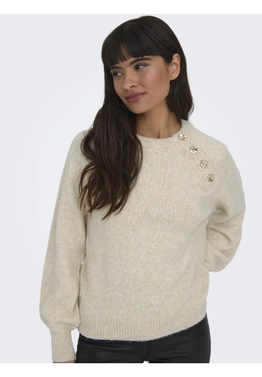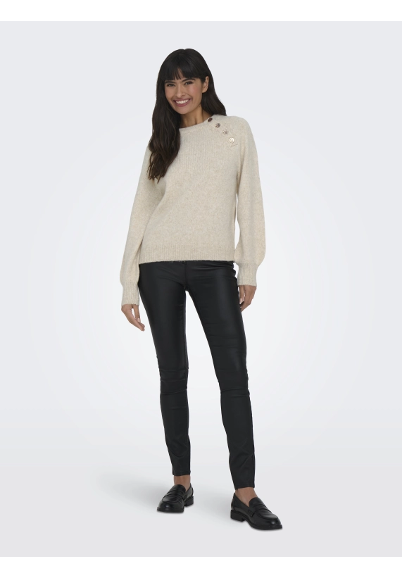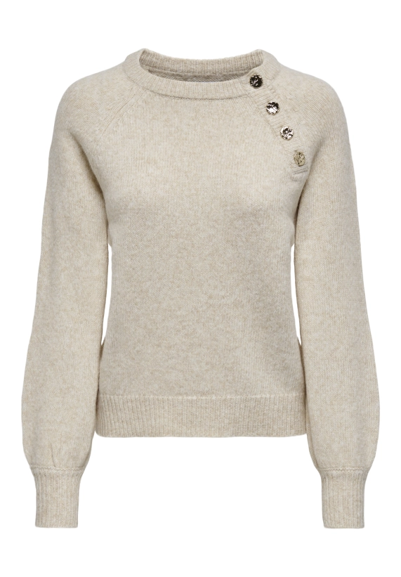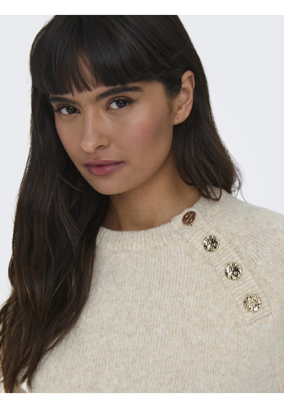 Verkrijgbaar in de kleuren zwart en beige met gouden knopen.