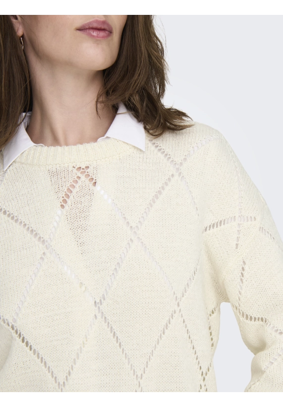 Trui Geenas voor dames van het merk Only. Verkrijgbaar in de kleuren blauw, wit en camel.