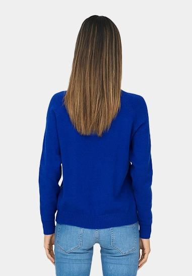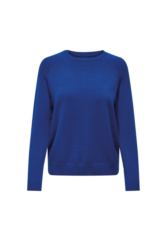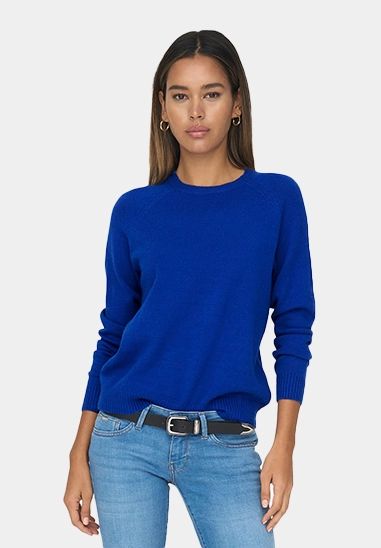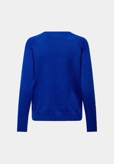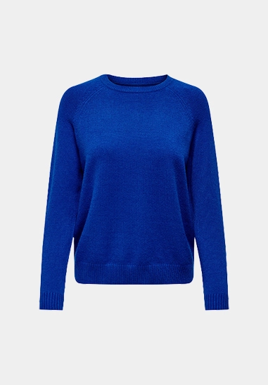 De trui is basic, effen van kleur en een heeft een ronde hals.
