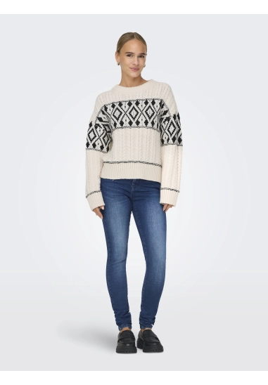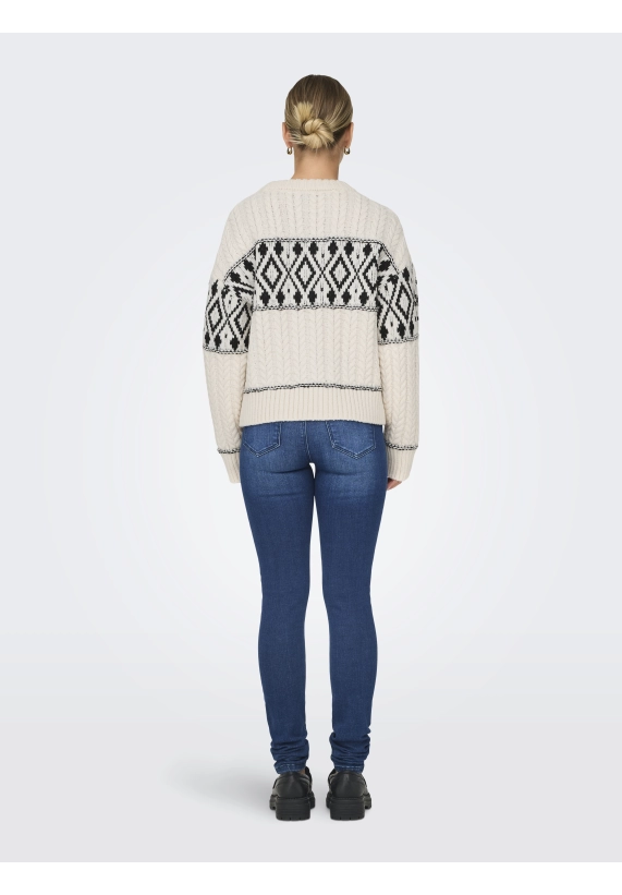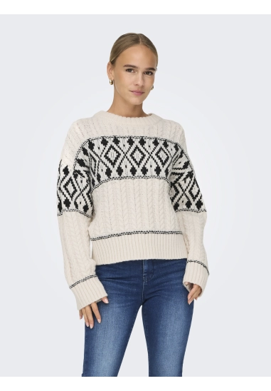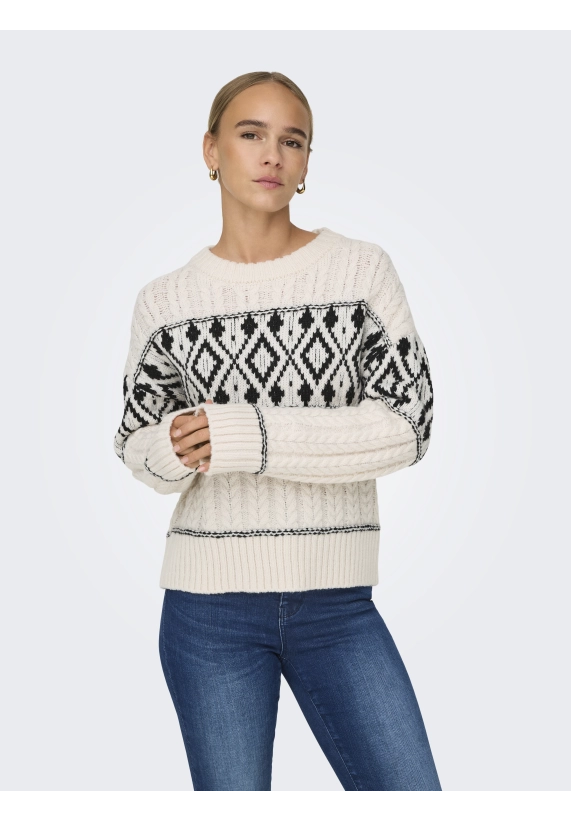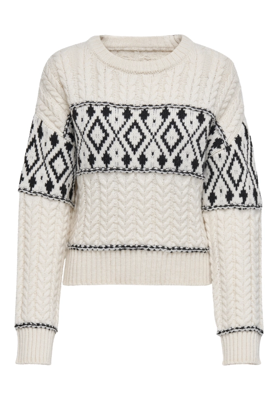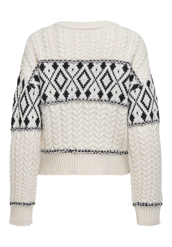 Gebreide trui Marent voor dames met motief van het merk ONLY. Verkrijgbaar in het ivoor wit met zwart.