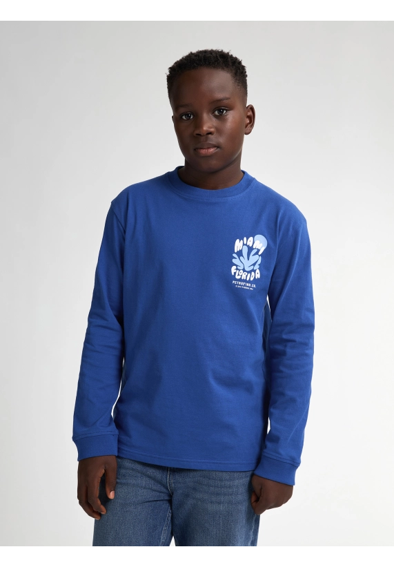 Shirt lange mouwen voor jongens. Deze longsleeve heeft een kleine print op de borst en een toffe grote backprint. Het shirt is van het merk Petrol Industries en verkrijgbaar in deze mooie kobalt blauwe kleur. Past ook heel tof in de collectie voor de zomer 2025.
