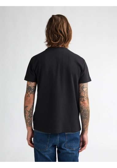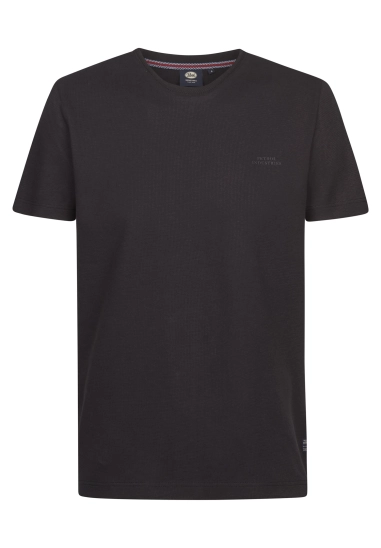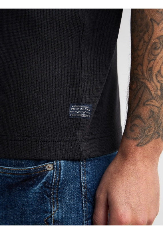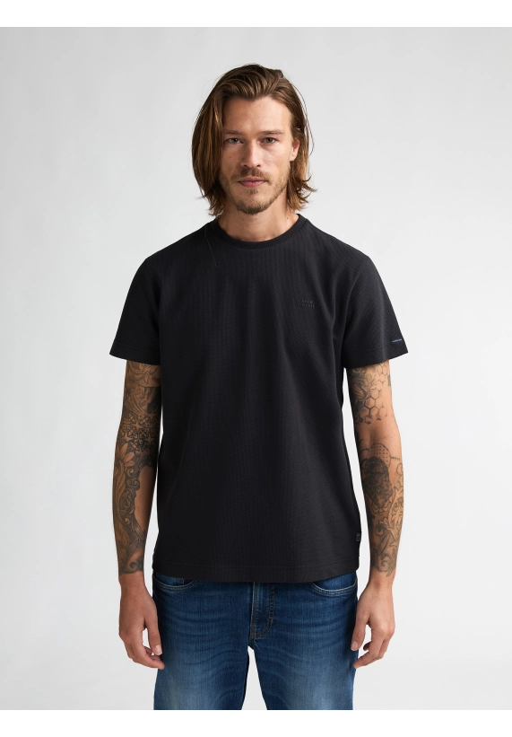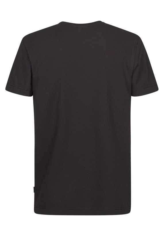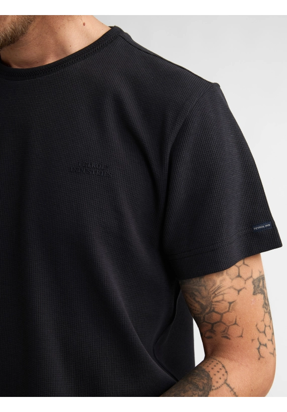 Ronde hals en korte mouw en met fijn wafelstructuur in het shirt.