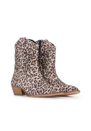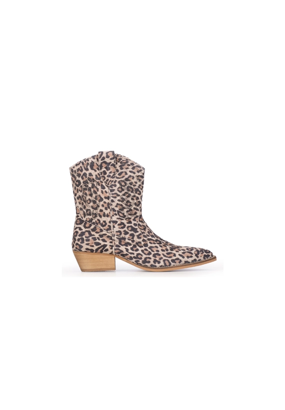 Deze heeft een bovenwerk van soepel en zacht sude met panterprint.