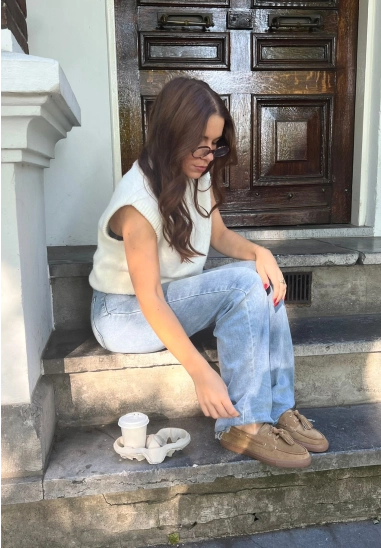 Loafers Silk voor dames van het merk Poelman. Verkrijgbaar in de kleur licht bruin.