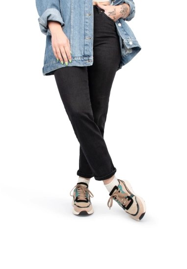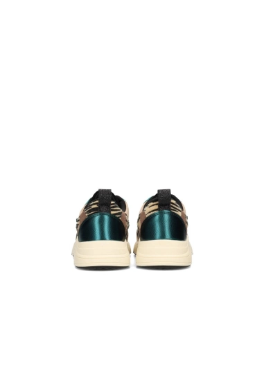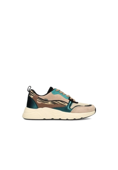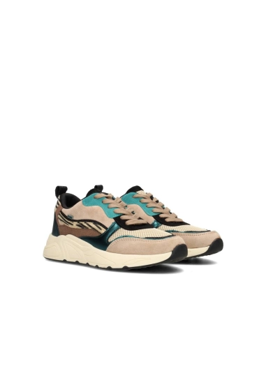 Verkrijgbaar in de taupe met petrol blauwe elementen.