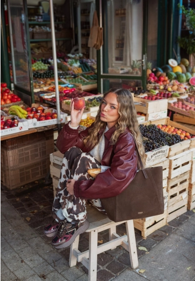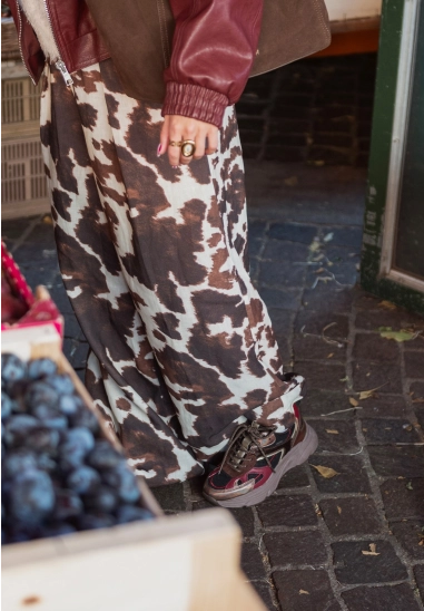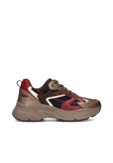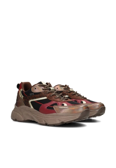Het bovenwerk van ademend mesh en imitatieleer zorgt voor een sportieve en eigentijdse look. De chunky bruine zool biedt grip en stabiliteit.