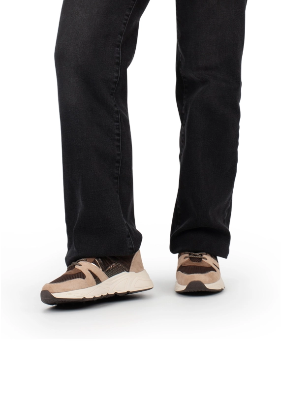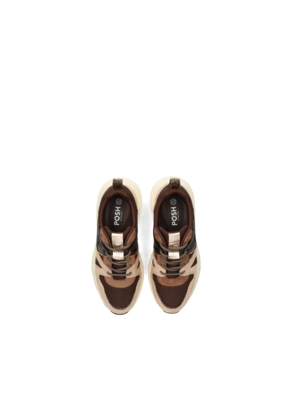 Deze bruine dames sneakers van Posh by Poelman (model C18582X9PSH42) combineren stijl en comfort. De schoen is gemaakt van een mix van mesh en sude-look materiaal en heeft een lichte, comfortabele zool. Dankzij de vetersluiting blijft de sneaker goed zitten.