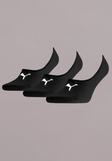 Drie paar footies unisex van het merk Puma. Deze footie sokken passen in elke sneaker zonder gezien te worden. Ze zijn effen van kleur en hebben het logo op de voorkant staan. Verkrijgbaar in zwart en wit.