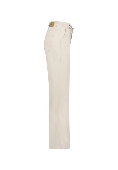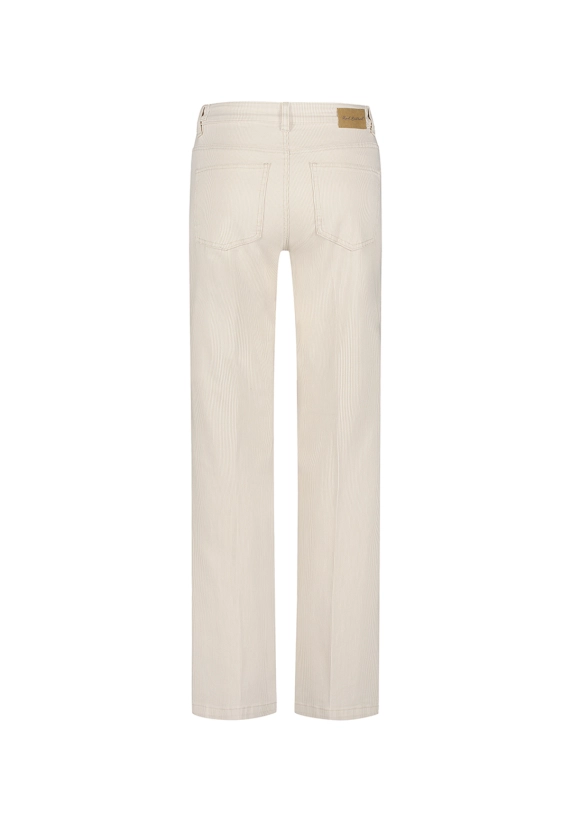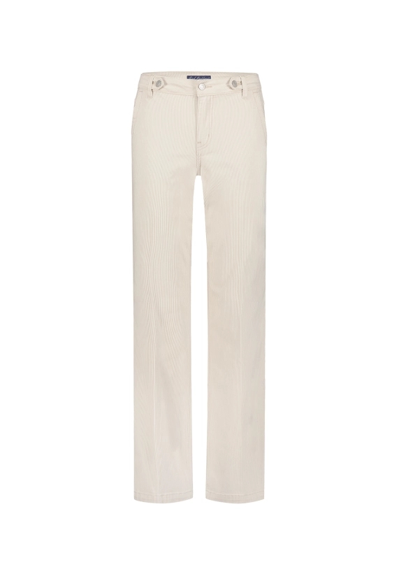Gestreepte broek met ritssluiting en knoopsluiting.