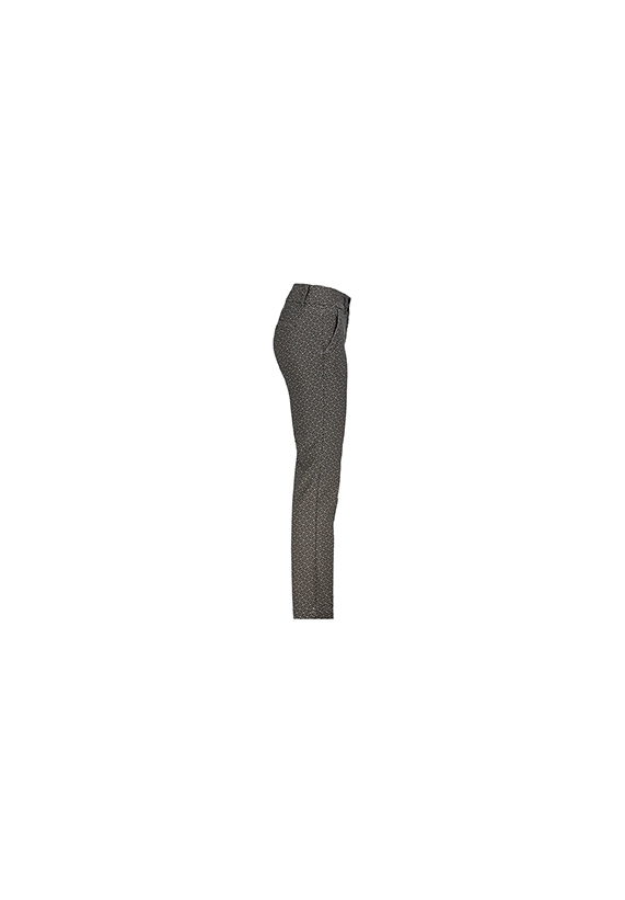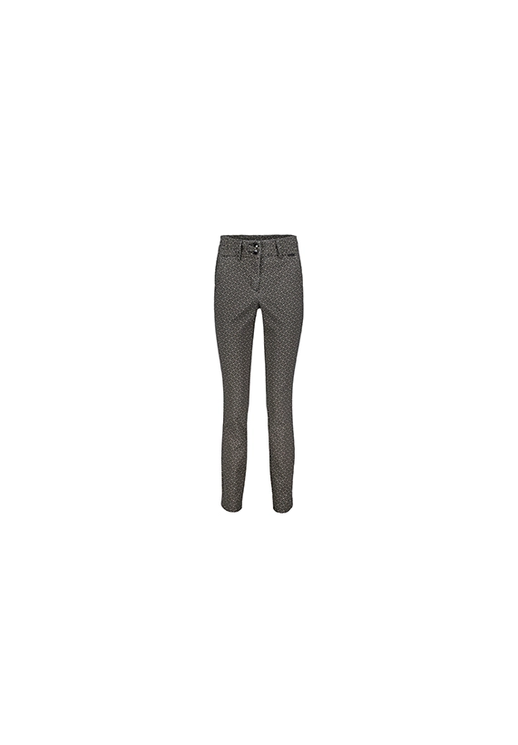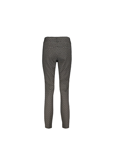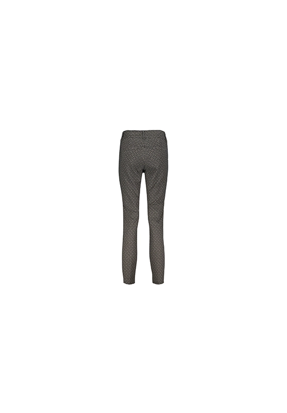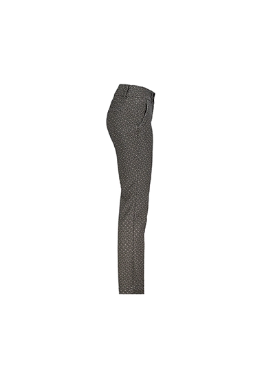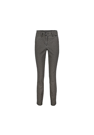 Geprinte broek Diana fancy square voor dames van het merk Red Button. De broek heeft een hoge pasvorm in de taille, een regular fit en tapered legs. De pantalon is verkrijgbaar in een grafische print met zwarte of taupe kleur als ondergrond.