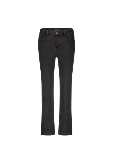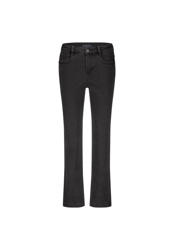 De Kim Black Strass is een straight leg jeans met een zwarte wassing en zwarte strass steentjes op de voorkant. De jeans is aansluitend op de heup en heeft rechte pijpen. De Kim Black Strass heeft een hoge taille en 4 zakken. Deze jeans is gemaakt van stretch denim voor ultiem comfort.
