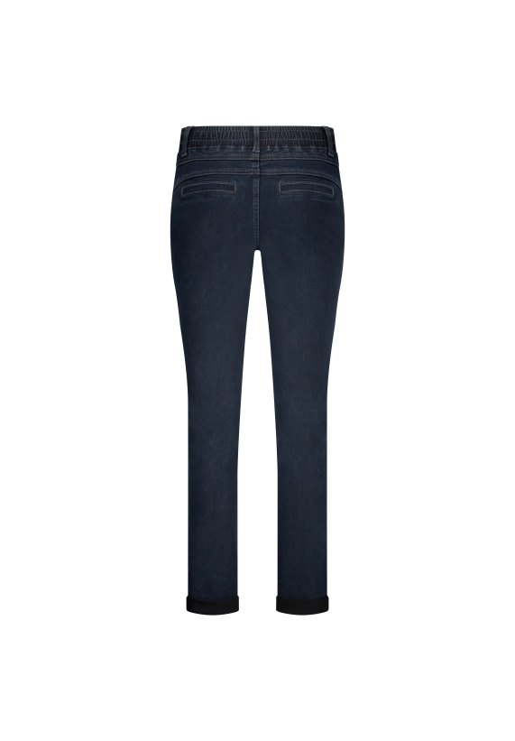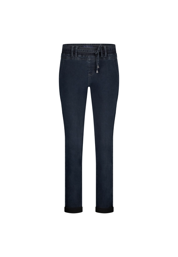 De Tessy Denim Ribjog is een geribde denim van een elastische kwaliteit met een koord in de taille. De broek is aansluitend op de heup, heeft taps toelopende pijpen en steekzakken. De Tessy Denim Ribjog heeft een hoge taille en een omgeslagen zoom.
