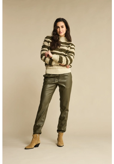 De Tessy Faux Leather is een faux leren broek met een regular fit en een trekkoord in de taille. De broek is verbonden op de heup, heeft taps toelopende pijpen en steekzakken. De Tessy Faux Leather heeft een hoge taille en paspelzakken aan de achterkant.