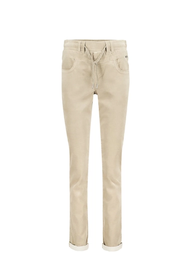 Broek Tessy velvet voor dames van het merk Red Button. Deze broek heeft een hoge taille, regular fit en tapered legs. De broek is van een zachte fluwelen stof en verkrijgbaar in het army groen en stone.