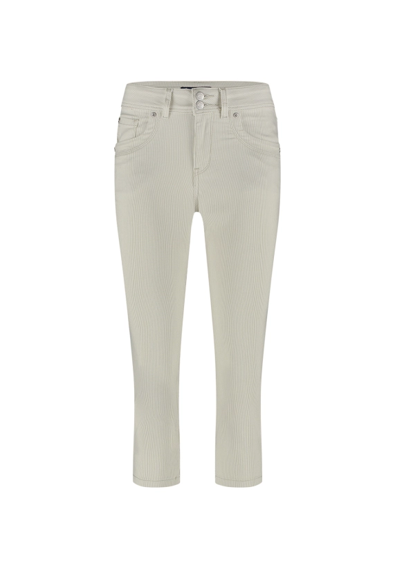 Gestreepte capri Suze voor dames van het merk Red Button. Verkrijgbaar in de kleur blauw en beige.