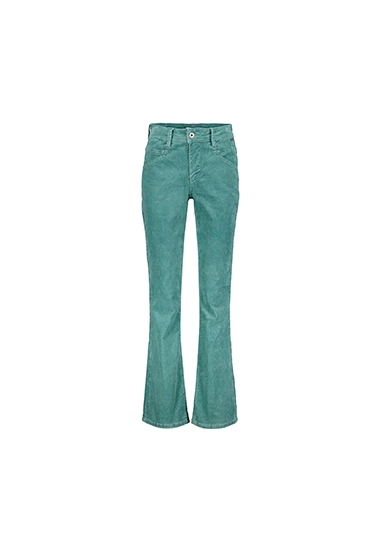 Flared broek Bibette voor dames van het merk Red Button. De ribbroek heeft een hoge taille, regular fit en uitlopende broekspijpen. De broek is gemaakt een fijne 10W ribstof en verkrijgbaar in beige en mint.