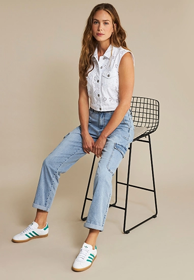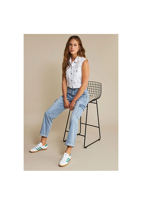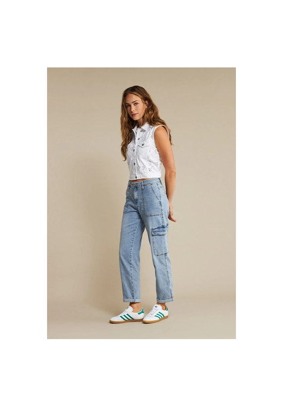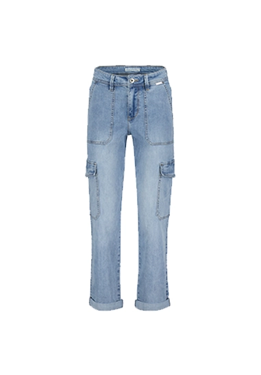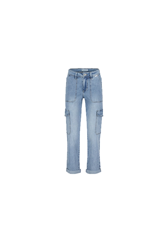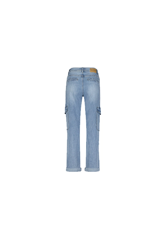 Jeans Cargo denim voor dames van het merk Red Button. Deze spijkerbroek heeft zijzakken en heeft een comfortabele stretch pasvorm. Verkrijgbaar in een blauwe midstone wassing.